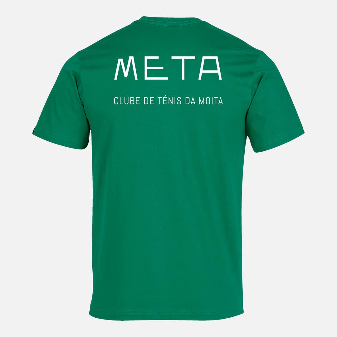 Logotipo META estampado na frente (é possível escolher outras variações do logotipo) e nas costas.
